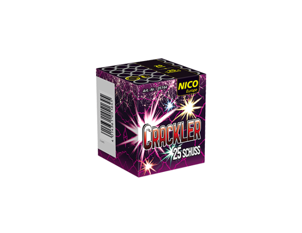 25 Schuss mit roten, grünen, gelben oder blauen Leuchtsternen und unzähligen Crackling-Effekten.
